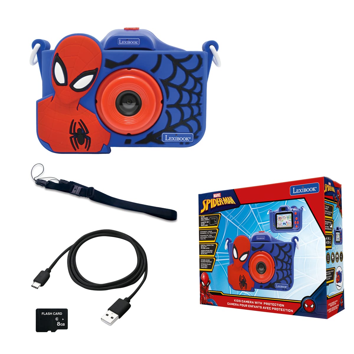 Capture adventures with the Lexibook Spiderman Kids Camera, featuring a protective cover!