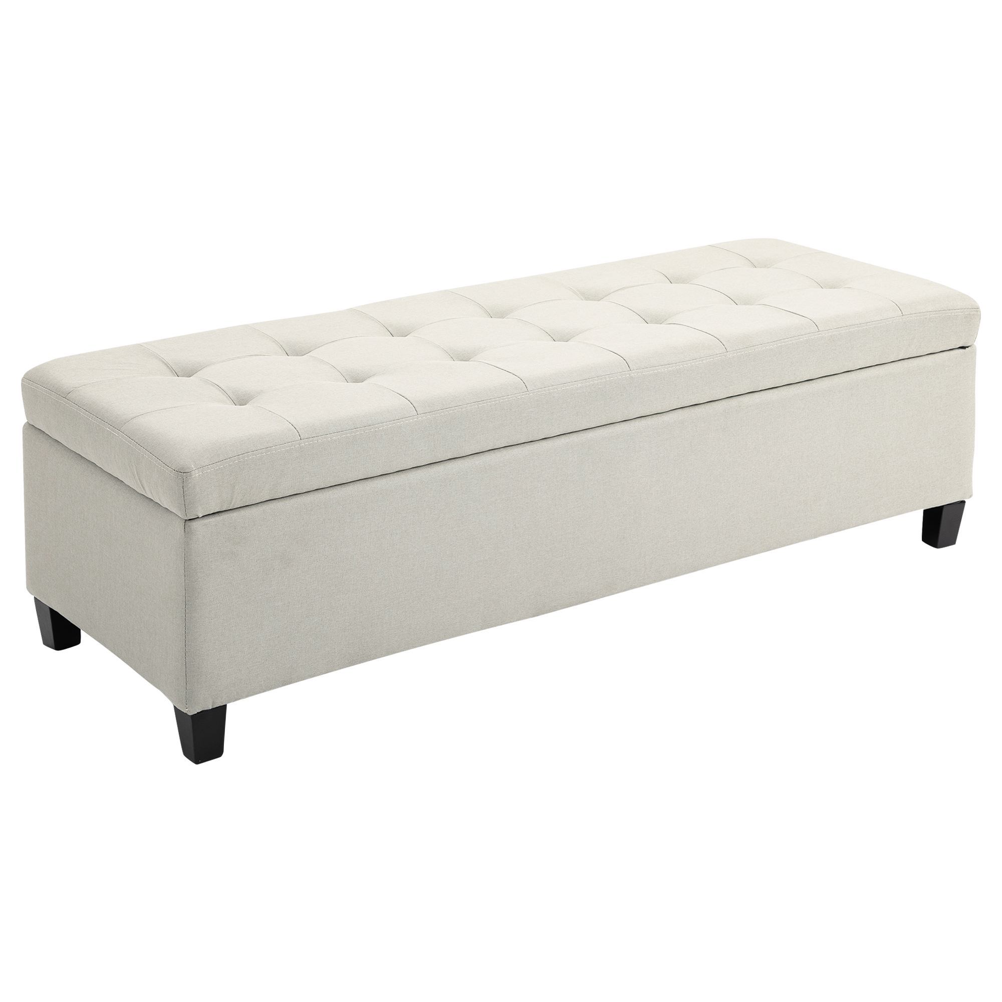 Homcom Linen Storage Ottoman Bench Padded w/ Tufting Hinged Lid Wood Frame Feet