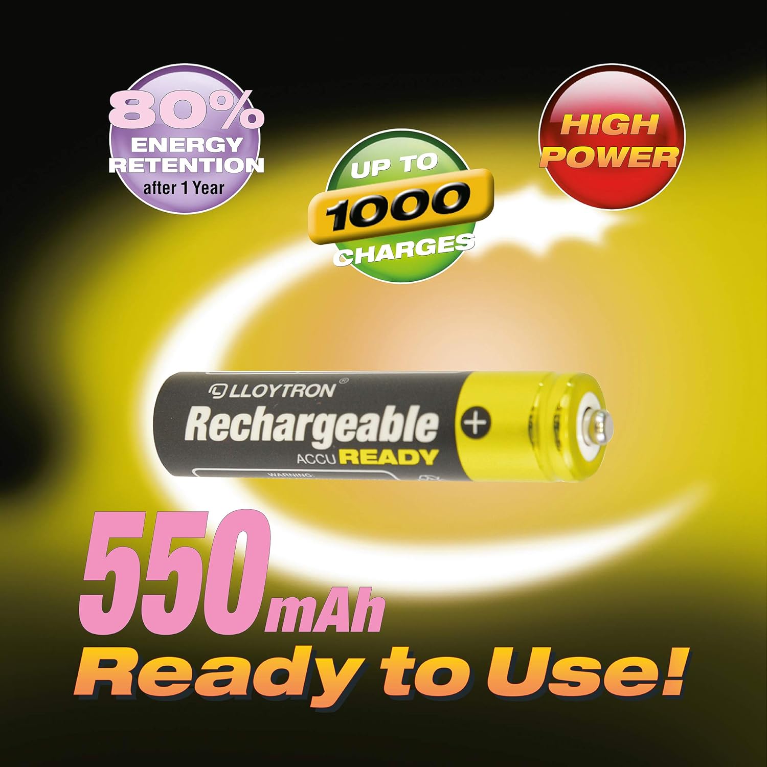 Lloytron B008LL Lloytron 4pk NIMH AccuReady Battery AAA 550mAh Ready to Use