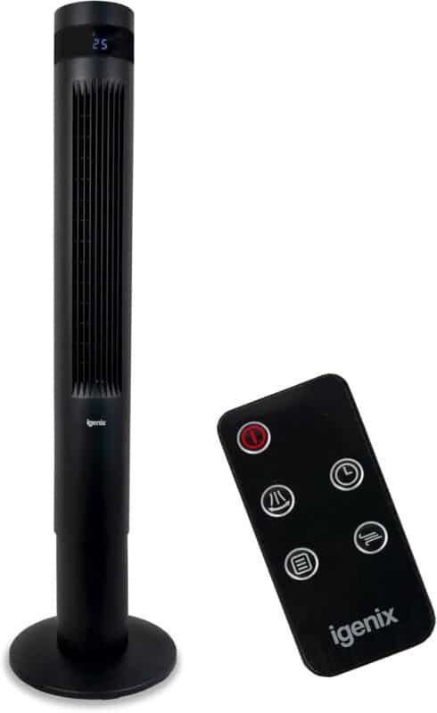 - Safety features including overheat protection and a tip-over switch.