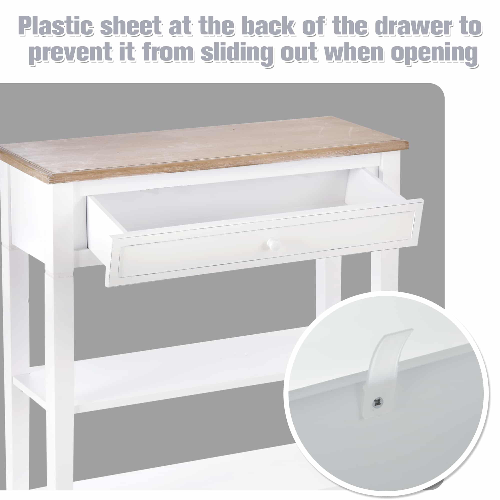 - Spacious wide drawer providing ample storage for small items and accessories.