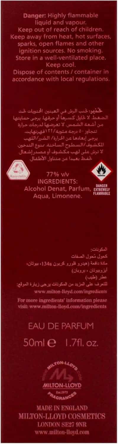 This versatile fragrance is suitable for all occasions and can be worn year-round. Its long-lasting formula ensures that you’ll stay smelling fresh and fabulous all day long. Treat yourself to the luxurious scent of Milton Lloyd Colour Me Dark Red Eau de Parfum and experience the confidence and allure it brings to your life.