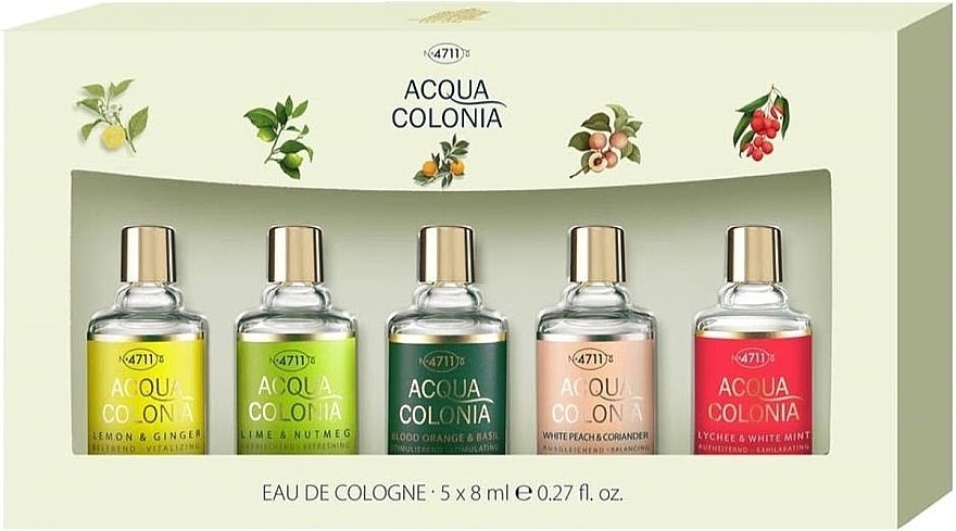 Maurer & Wirtz 4711 Acqua Colonia Gift Set 8ml Lime & Nutmeg EDC + 8ml Lemon & Ginger EDC + 8ml Blood Orange & Basil EDC + 8ml Lychee & White Mint EDC + 8ml White Peach & Coriander EDC