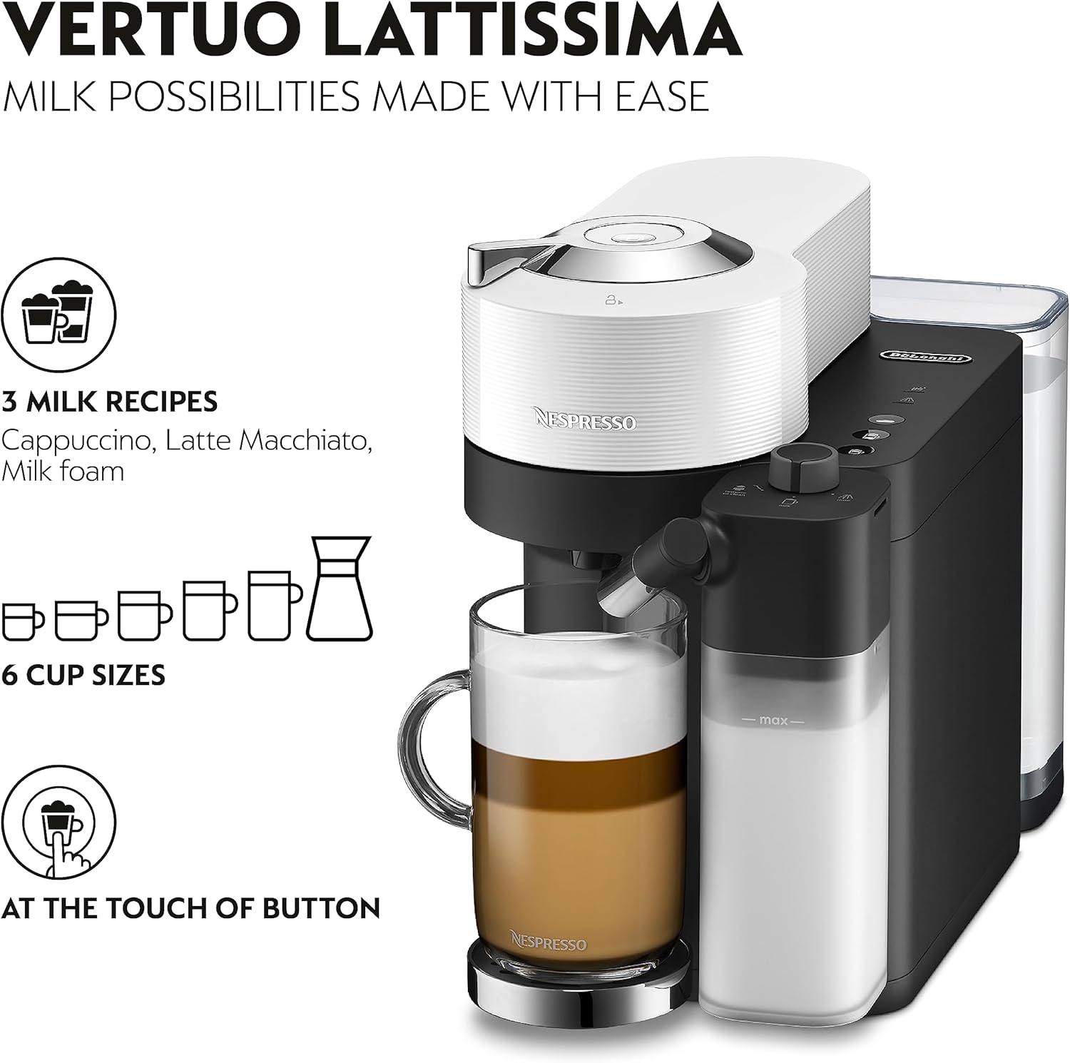 Overall, the Nespresso ENV300.W Vertuo Latissima Coffee Machine in White is a must-have for any coffee enthusiast. Its combination of style, convenience, and quality make it a valuable addition to your morning routine. Treat yourself to cafe-quality coffee at home with this impressive machine.