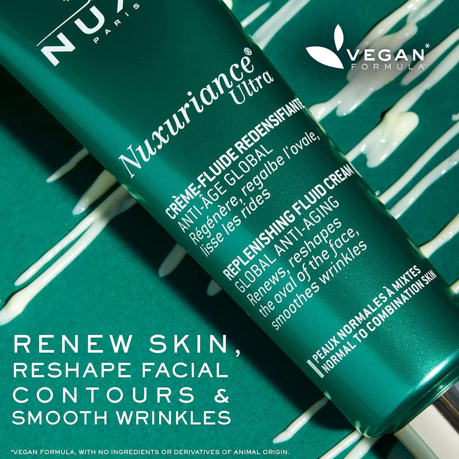 The Nuxe Nuxuriance Ultra Replenishing Fluid Cream comes in a 50 ml container, perfect for both home use and travel. To maintain its efficacy, store the cream in a cool, dry place away from direct sunlight. This product is cruelty-free, reflecting Nuxe's commitment to ethical and sustainable beauty practices.