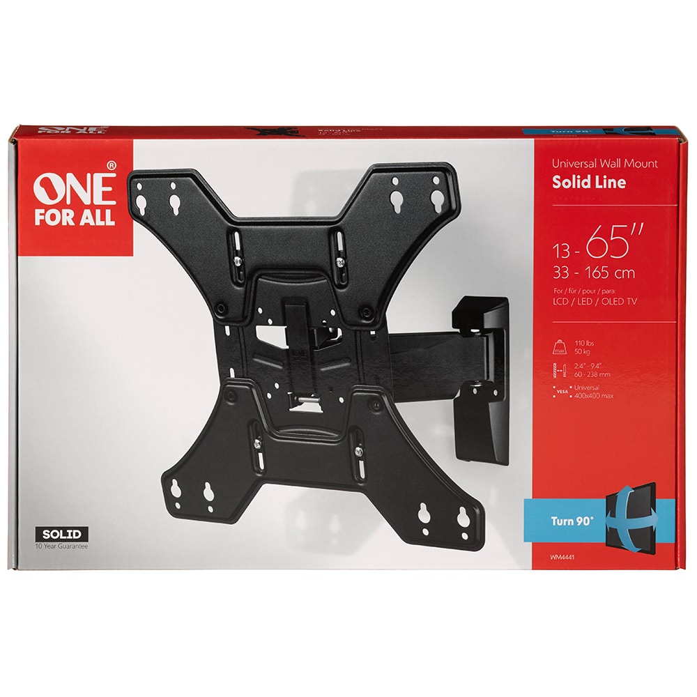 The One For All WM4441 13-65 inch TV Bracket Full Turn 90 Solid Series is the perfect solution for mounting your TV securely and stylishly. This versatile bracket is compatible with TVs ranging from 13 to 65 inches, making it suitable for a wide range of setups.