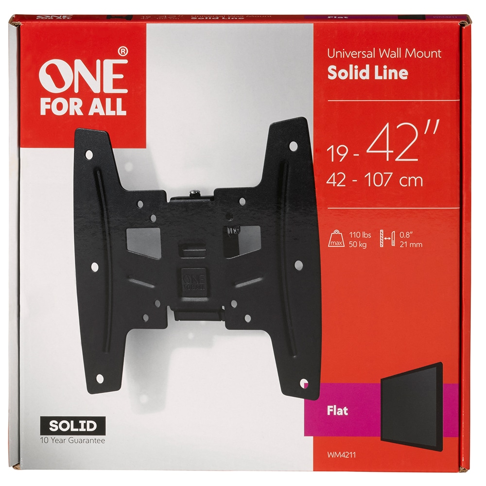 Introducing the One For All WM4211 TV Bracket, designed for those who appreciate both style and functionality in their living spaces. This flat solid series TV bracket is the perfect solution for mounting your TV securely while maximizing your viewing experience. Whether you’re watching your favorite movie, playing video games, or enjoying a sports event, the WM4211 ensures your screen is positioned for optimal visibility and comfort.