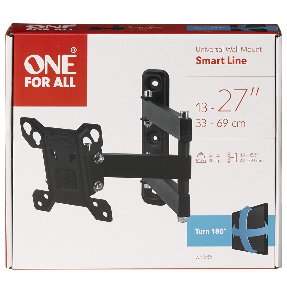Introducing the One For All WM2151 13-27 inch TV Bracket Turn 180 Smart Series, the perfect solution for optimizing your viewing experience. Designed for televisions ranging from 13 to 27 inches, this wall mount bracket not only provides sturdy support but also allows for versatile positioning to suit your unique needs. Whether you're watching your favorite shows, playing video games, or enjoying family movie nights, this TV bracket ensures that you can always find the perfect angle.
