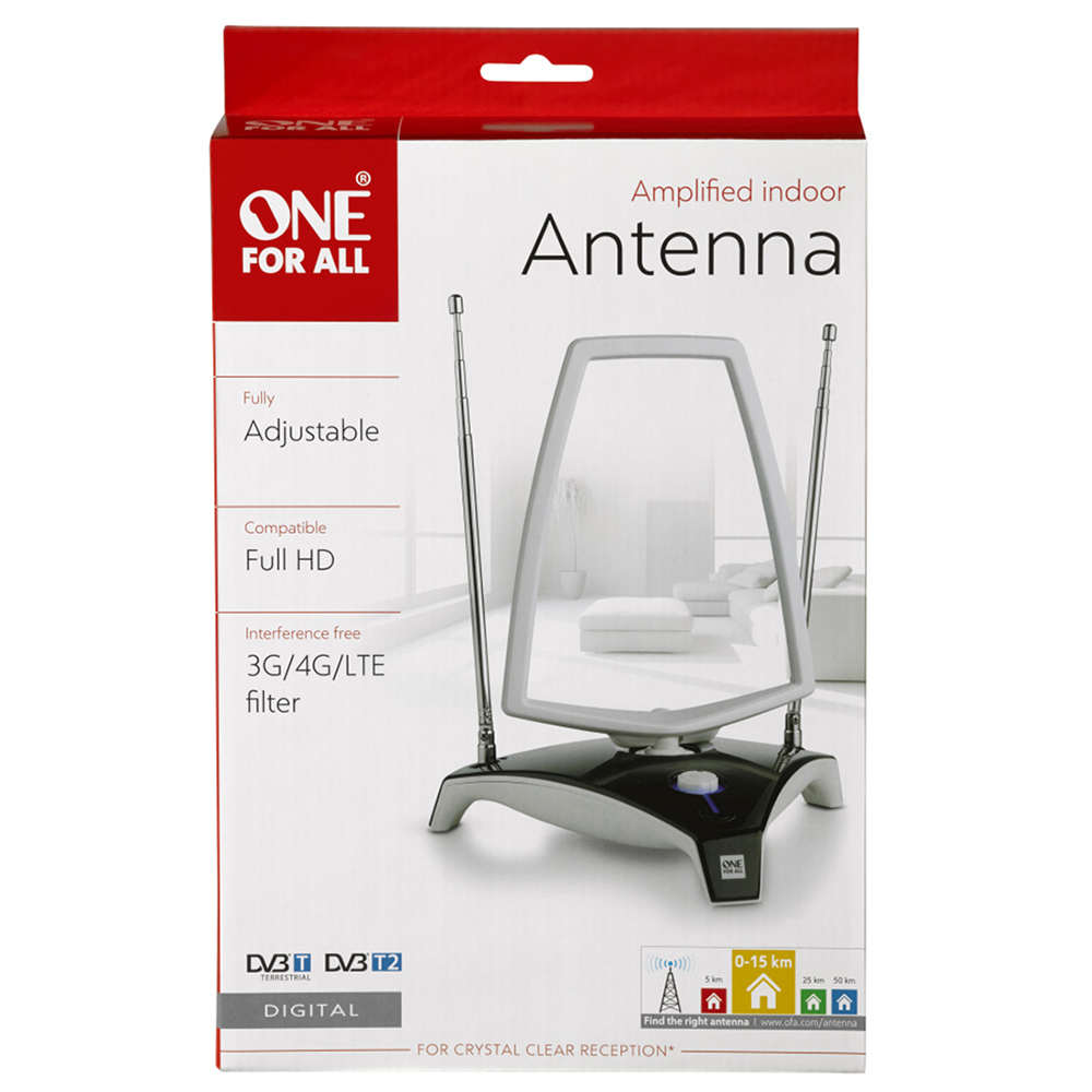 - Digital amplified indoor aerial with a powerful 45 dB gain for enhanced signal reception.