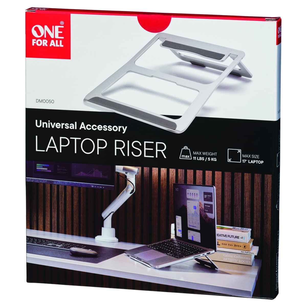 Elevate your workspace with the One For All Laptop Riser for better posture and comfort.
