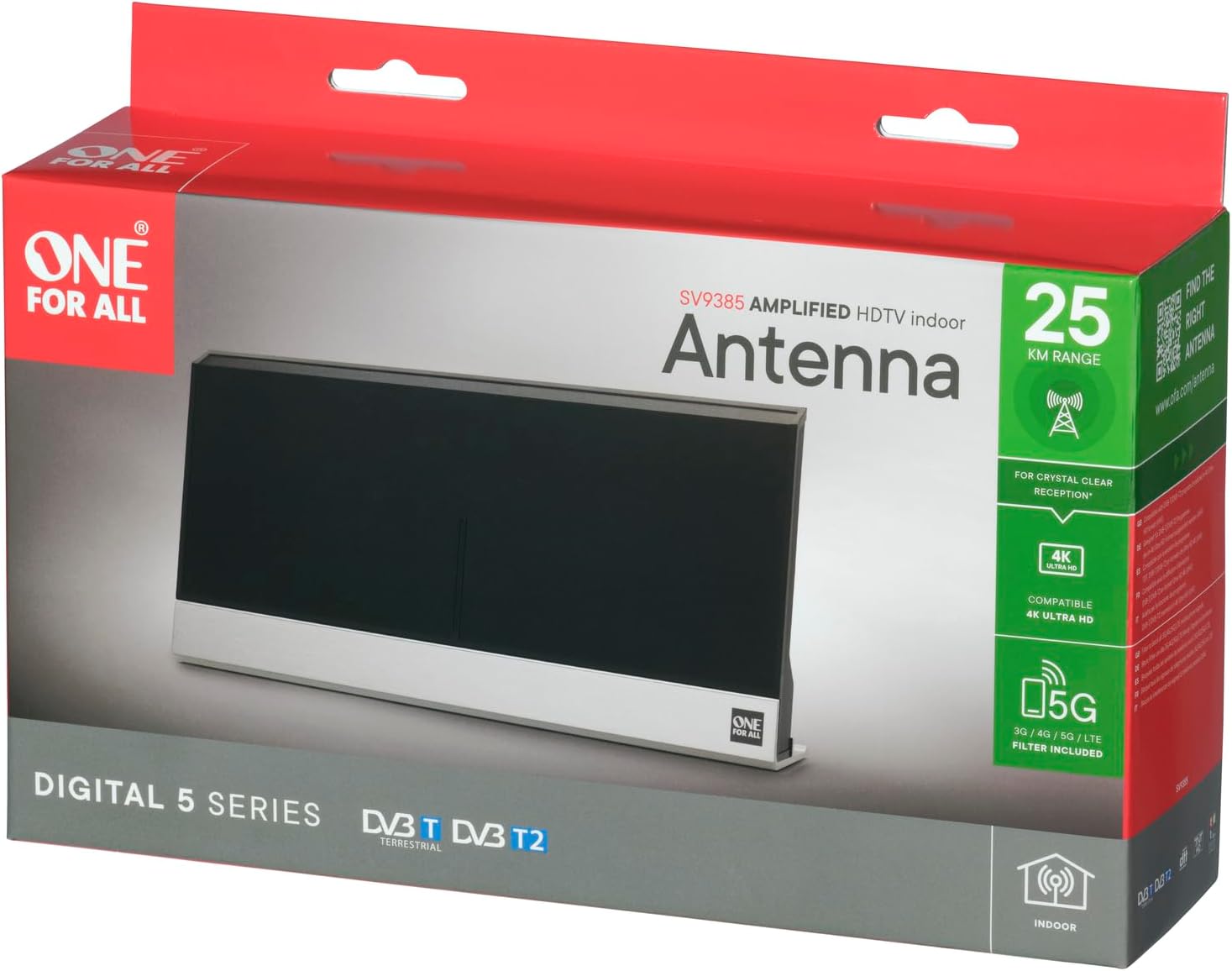 One For All is a trusted brand known for producing high-performance connectivity products that combine innovation with user-friendly design. The SV9385 model continues this tradition by delivering measurable improvements in digital TV reception at an exceptional value.