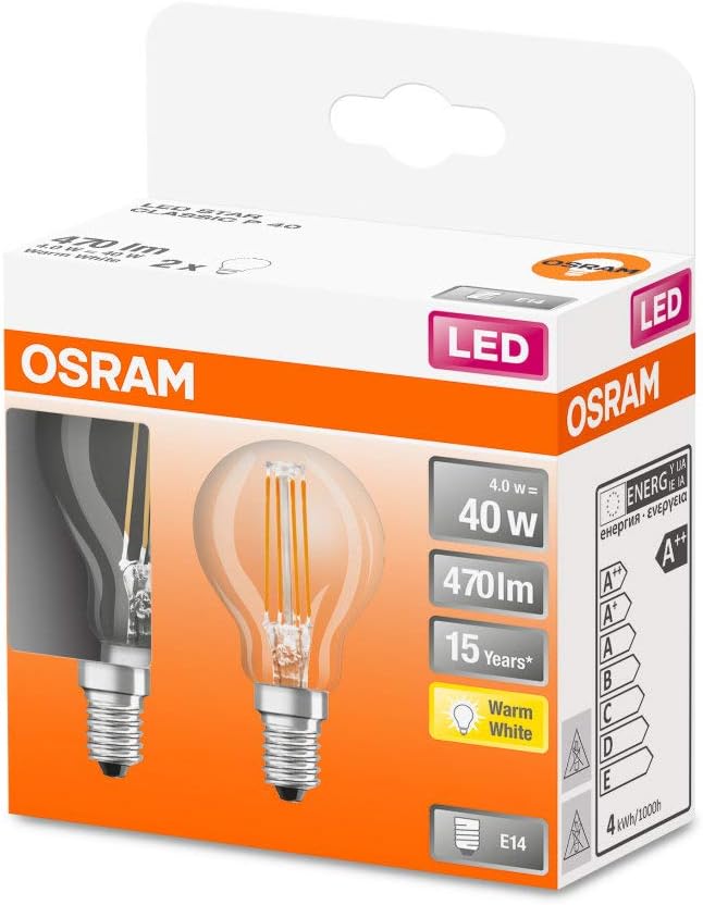 Enhance your lighting with the Osram LV434288 LED 40 W E14 Filament Clear Glass Mini Globe bulbs, designed to deliver bright, energy-efficient illumination. This twin pack combines classic filament aesthetics with modern LED technology, offering long-lasting performance and reduced energy consumption. Ideal for decorative fixtures requiring SES (E14) bases, these bulbs provide clear, warm light that enhances ambiance while lowering electricity costs.