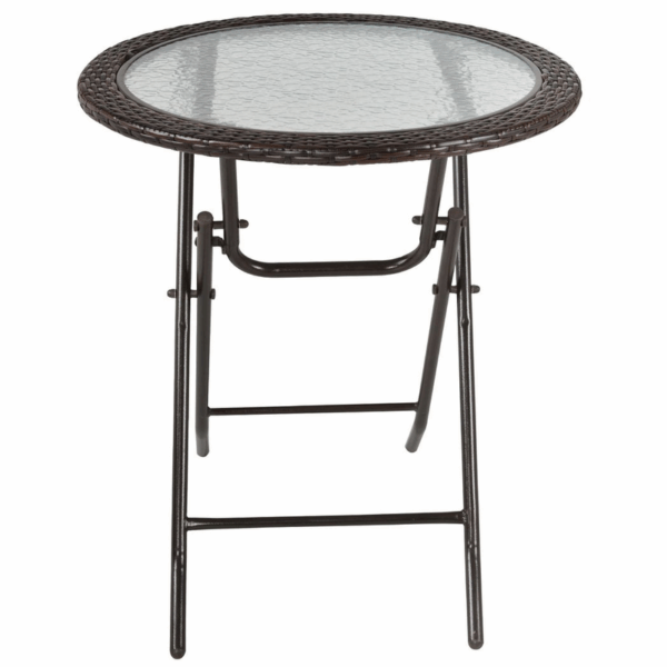 Elevate your outdoor space with this stylish, durable folding table featuring tempered glass and elegant rattan edging. Perfect for any garden or patio setting.