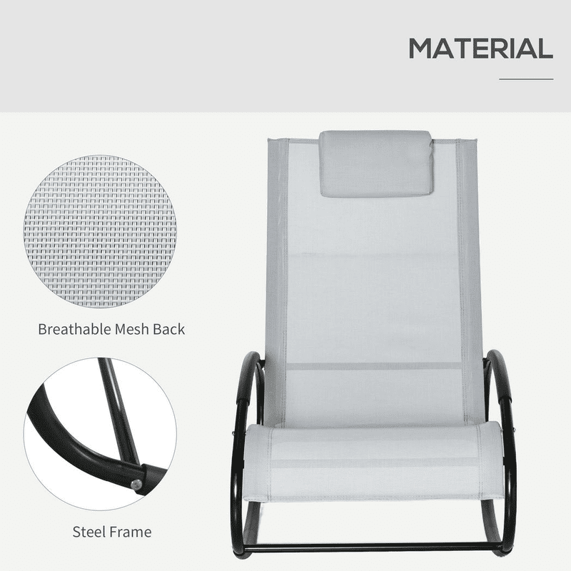 Outsunny is a brand known for its commitment to quality and innovative outdoor furniture solutions. With a focus on customer satisfaction, Outsunny designs products that combine functionality and style, making outdoor living enjoyable and accessible for everyone. Choose the Outsunny Patio Rocking Chair Orbital Zero Gravity Seat Pool Chaise with Pillow and experience the perfect harmony of comfort and design in your outdoor relaxation.