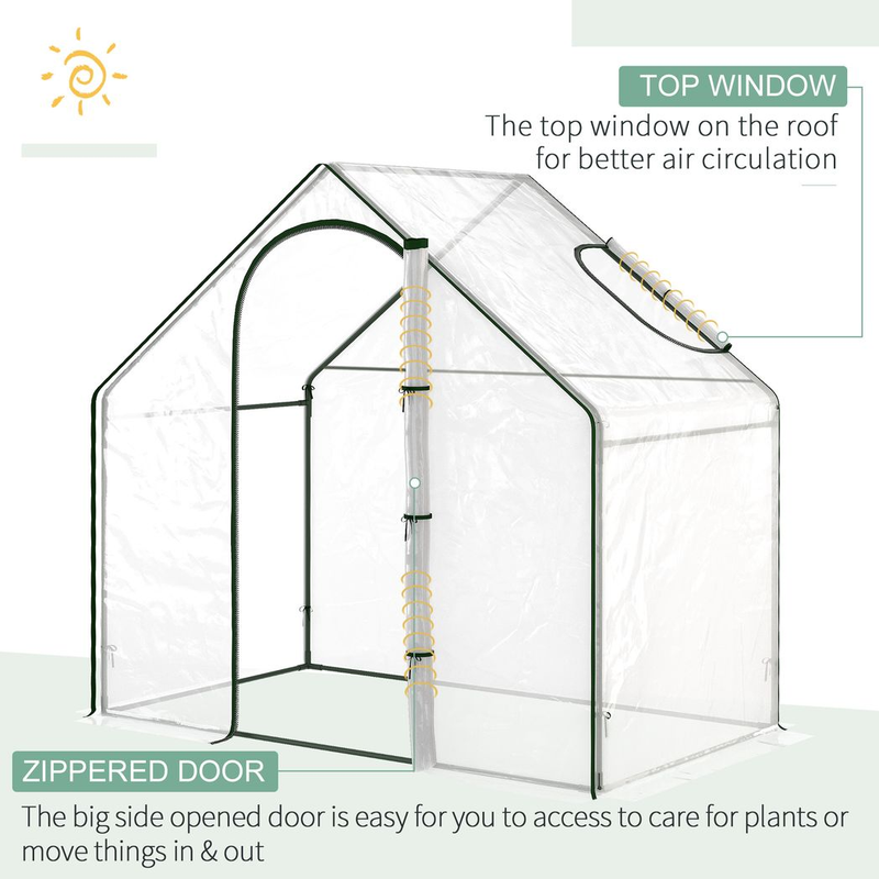 Introducing the Outsunny Portable Walk-in PVC Greenhouse with Zipped Door, the ideal solution for gardening enthusiasts looking to extend their growing season and provide a nurturing environment for their plants. This versatile greenhouse is designed to protect your flowers, vegetables, and plants from harsh weather elements while ensuring they receive ample sunlight. Whether you are a seasoned gardener or just starting, this greenhouse is a must-have for anyone wanting to create a thriving garden space.