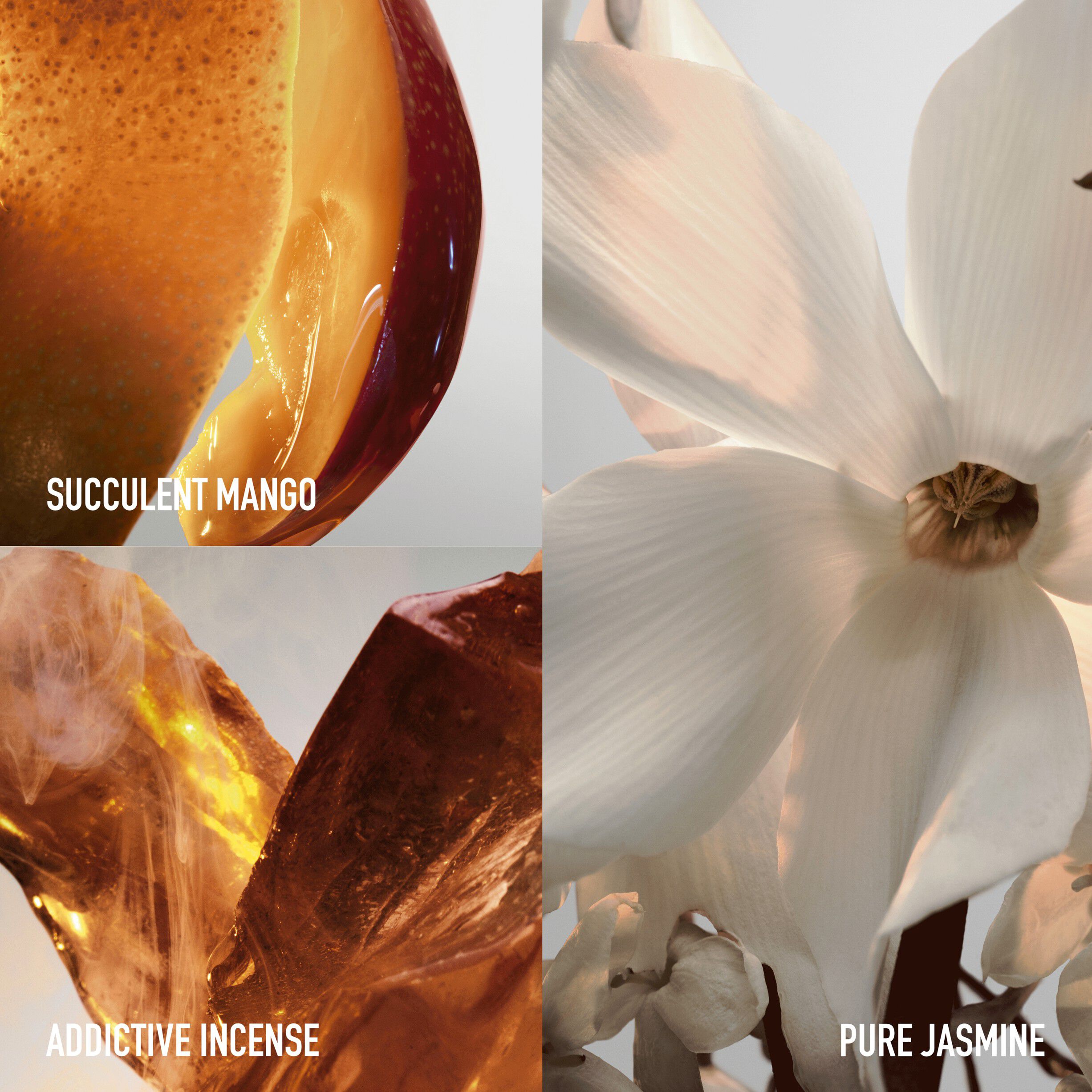 • Middle (Heart) Notes: Floral jasmine, warm vanilla