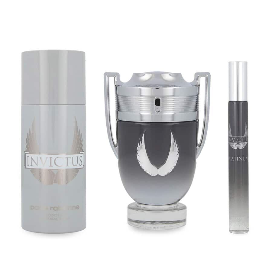 The Invictus Platinum Gift Set is elegantly presented, making it a superb choice for gifting. The sleek design of the bottles reflects the modern aesthetic of the Paco Rabanne brand. To maintain the quality of the fragrance, store it in a cool, dry place away from direct sunlight.