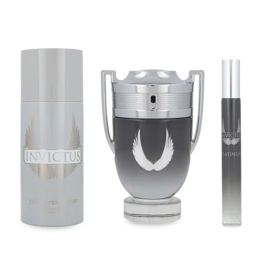 Paco Rabanne Invictus Platinum Gift Set 100ml EDP Spray + 150ml Deodorant Spray + 10ml EDP Mini Spray