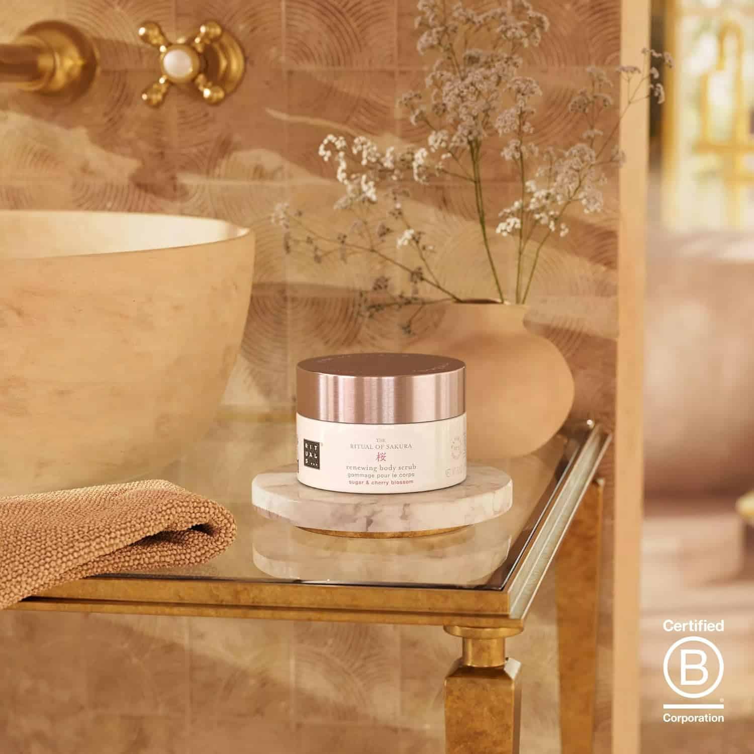 Rituals The Ritual of Sakura Renewing Body Scrub is crafted with high-quality, naturally derived ingredients, ensuring a gentle yet effective exfoliation experience. To maintain the integrity of the product, store it in a cool, dry place away from direct sunlight.