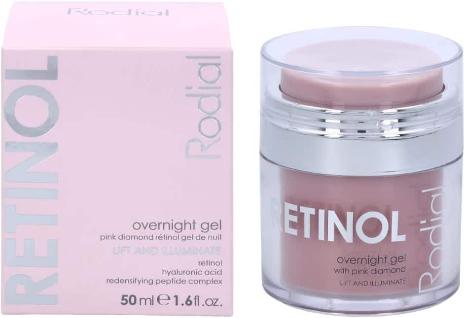 - The Rodial Pink Diamond Retinol Overnight Gel comes in a 50 ml jar, perfect for both long-term use and travel.