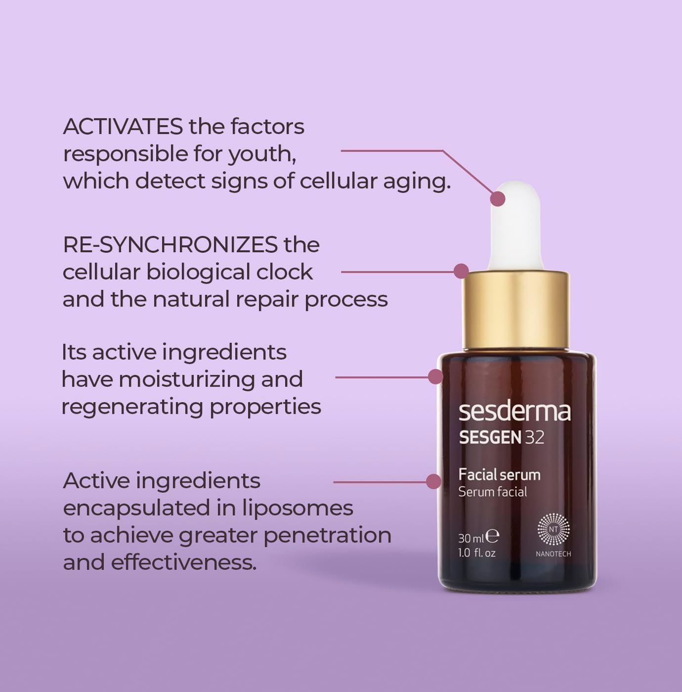 The Sesderma Activadora Cellular Serum is designed to visibly reduce fine lines, wrinkles, and other signs of aging. By promoting cellular turnover and boosting collagen synthesis, this serum helps to restore your skin's natural elasticity and firmness. Users can expect a smoother texture, improved tone, and an overall more youthful complexion.
