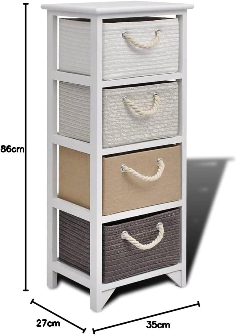 Introducing the vida XL Storage Cabinet with 4 Drawers, a perfect solution for organizing your space while adding a touch of elegance to your home decor. This multifunctional storage cabinet is designed to meet all your storage needs, whether in the living room, bedroom, or office. With its charming wooden construction, it blends seamlessly with various interior styles while providing ample storage space to keep your belongings neatly tucked away.