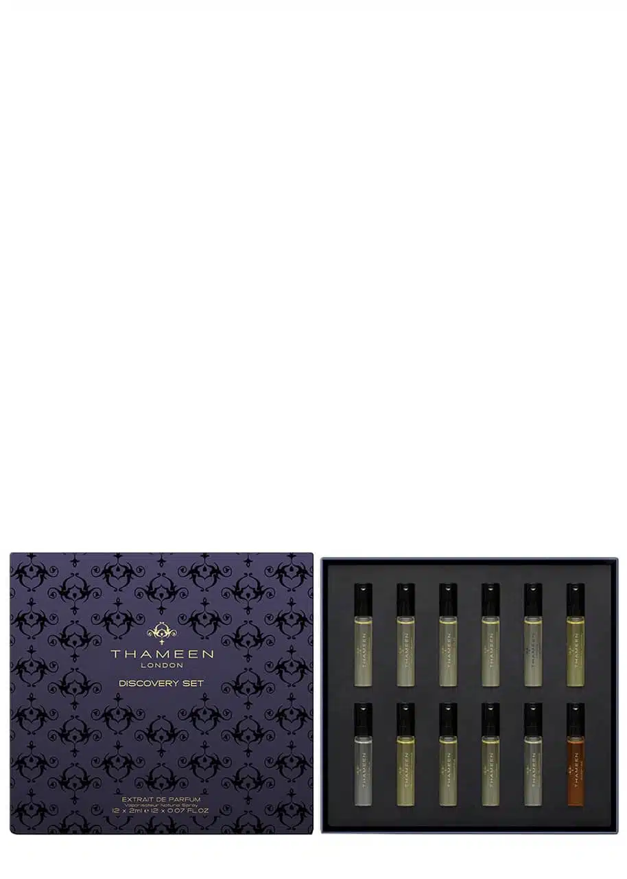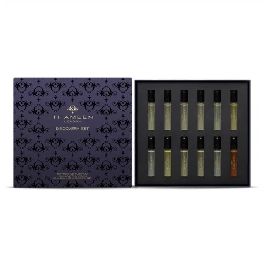 Explore 12 exquisite fragrances in this Thameen Discovery Set. Perfect for any occasion!
