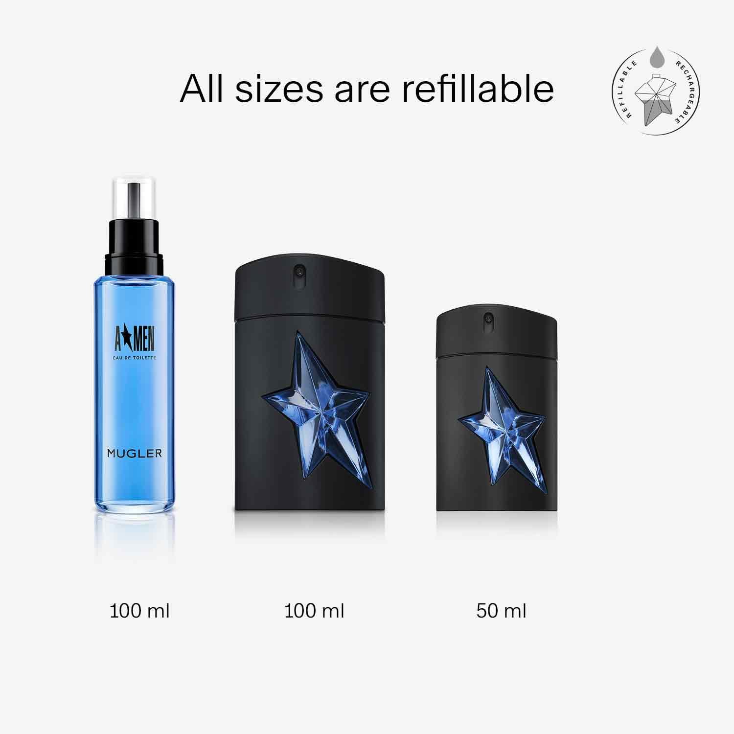 Experience bold fragrance with Thierry Mugler AMen Rubber Flask, 50ml refillable spray.