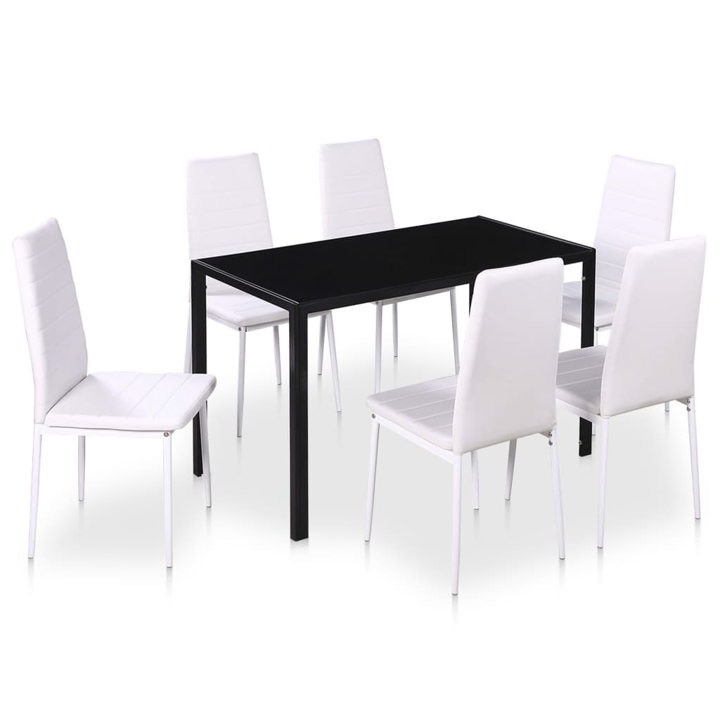 Upgrade your dining experience with the vida XL 7 Piece Dining Table Set in black and white, where style meets functionality in perfect harmony.