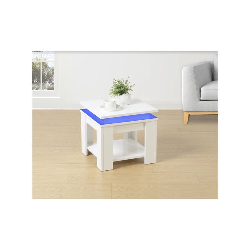 Transform your space with the Effulgence White Square Side Table with Blue LED Light, where modern design meets everyday utility. Make it a focal point in your home and enjoy the perfect blend of style and functionality.