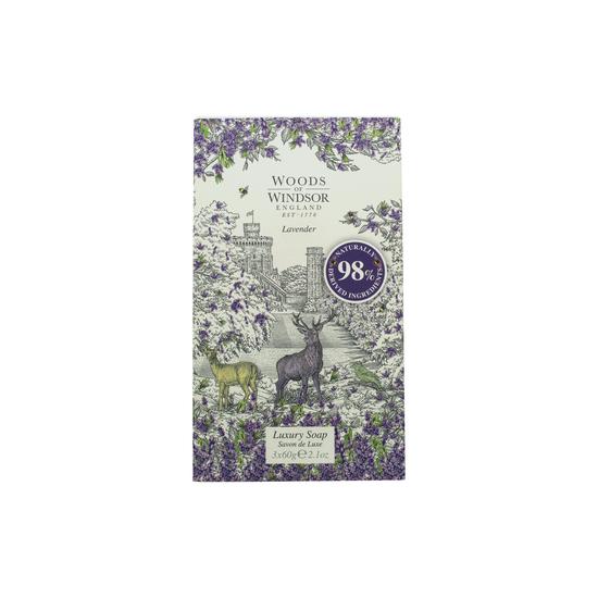 Experience the calming essence of Woods of Windsor Lavender Soap, perfect for soothing skin and senses. Enjoy three luxurious 60g bars for a refreshing cleanse.