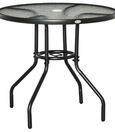 Outsunny Outdoor Round Dining Table Tempered Glass Top Steel w/ Parasol Hole 80cm