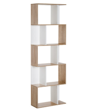 Homcom 5-tier Display Shelving Storage Bookcase S Shape design Unit Natural