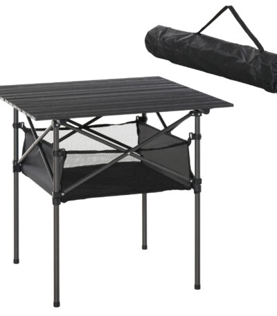Outsunny Aluminum Camping Table Roll-Top Folding Table Picnic Table w/ Mesh Bag, Black