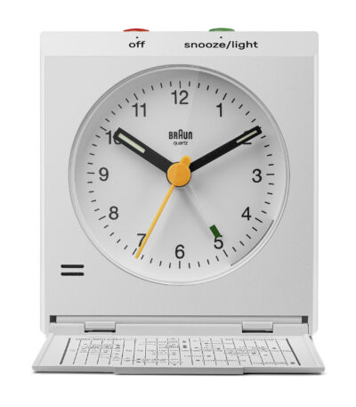 Braun BC05W Vitange Travel Analogue Alarm Clock with Snooze and Light – White