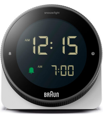 Braun BC24W Digital Alarm Clock with Rotating Bezel for Quick Time Setting – White